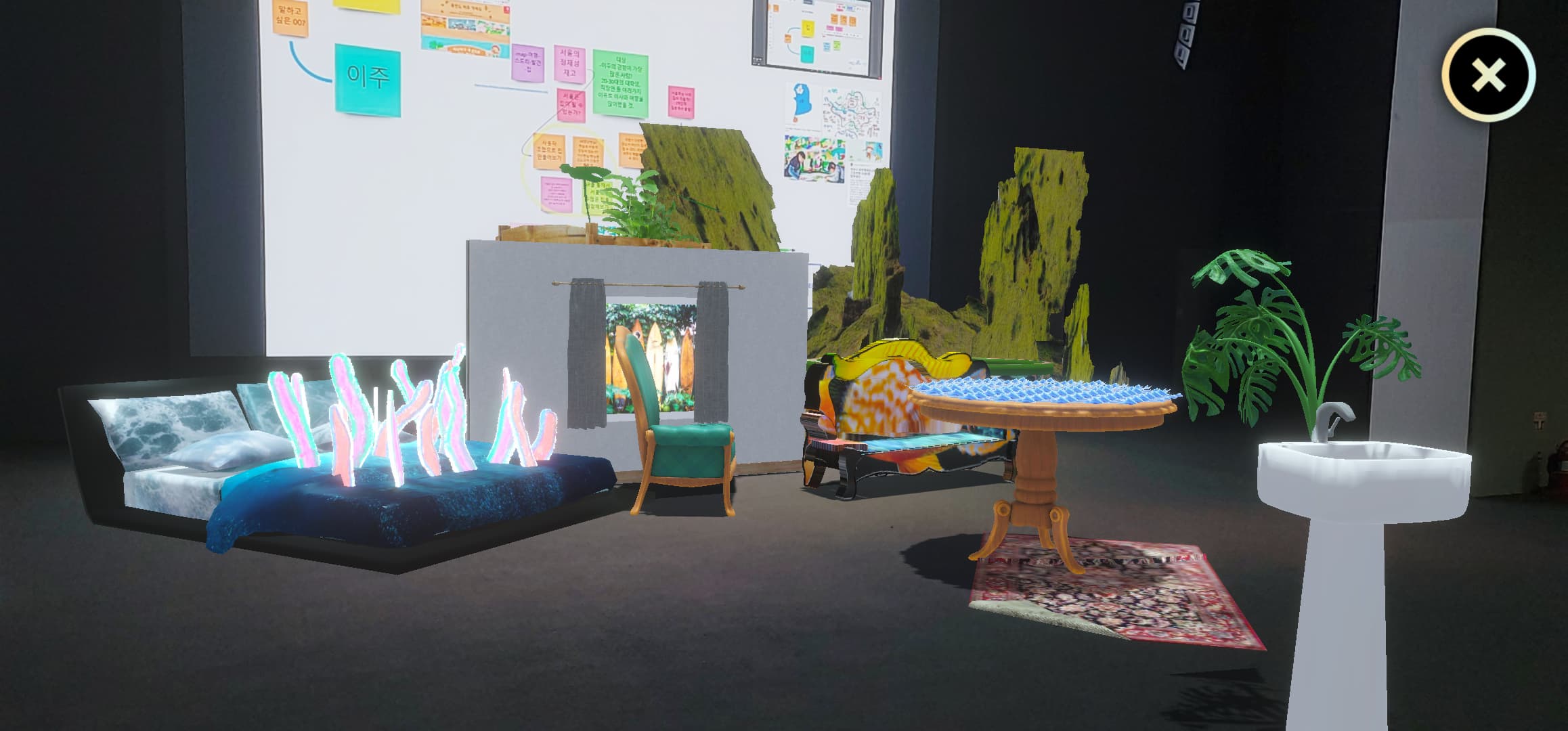 스토리텔링 지점에서 수집한 단서—사물, 단어, 인상들—을 증강현실(AR) 공간에서 다시 조합해 각자의 집을 구축한다. “나에게 집은 무엇인가?”라는 질문에 대한 개인적 응답들이 겹겹이 쌓이며, 각자의 경험과 상상에 기반한 개별적 집이 형상화된다.