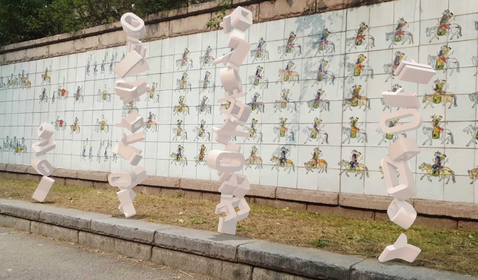 To transform the limitations of urban community and communication into playful interaction, I designed an algorithm that converts sentences entered by the audience into Korean symbols and reconstructs them into new signs, as well as an interface that allows these to be placed within an augmented reality environment.
