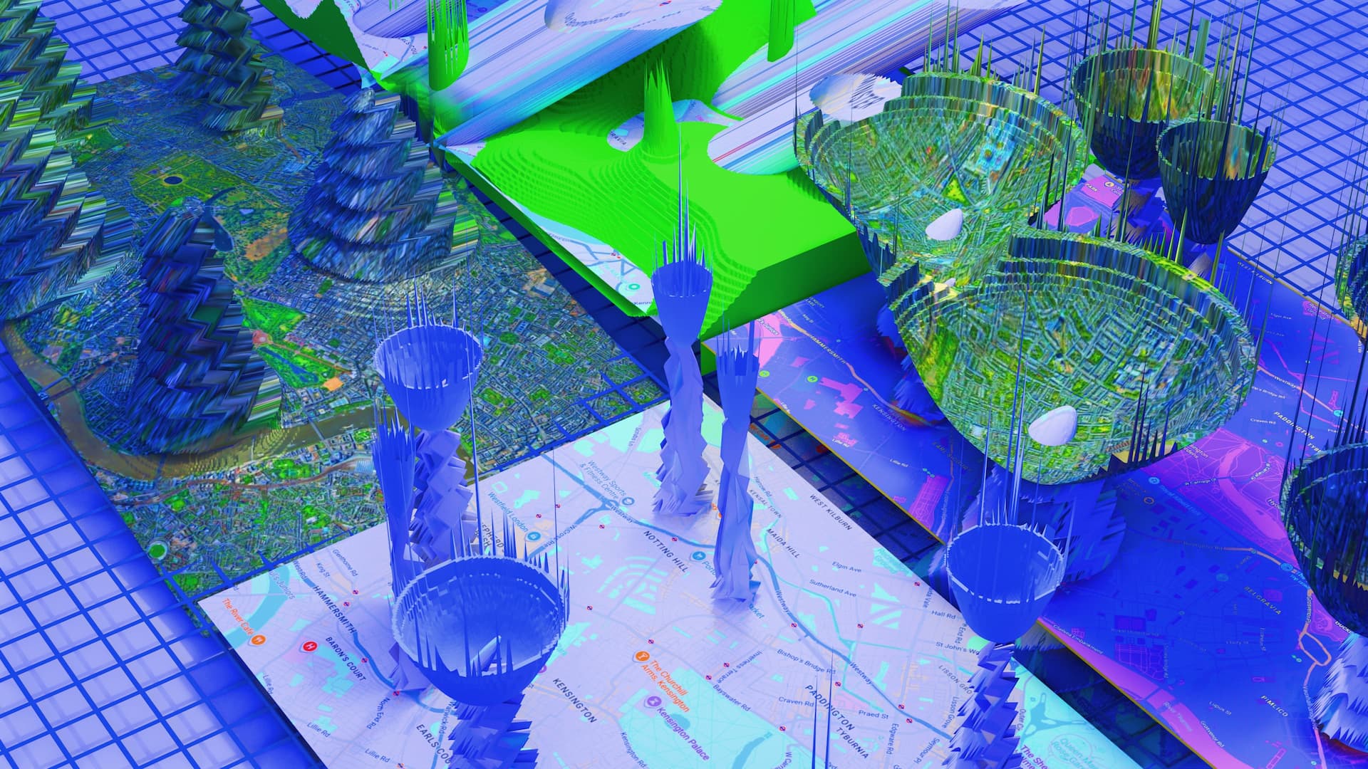 Level 2 extends this reactivated imagination into space. Rather than reconstructing buildings, it removes built form and explores how imagination alone might compose a spatial horizon. Spread across an infinite grid, imaginaries circulate, accumulate, and subtly alter the field in which they appear.
