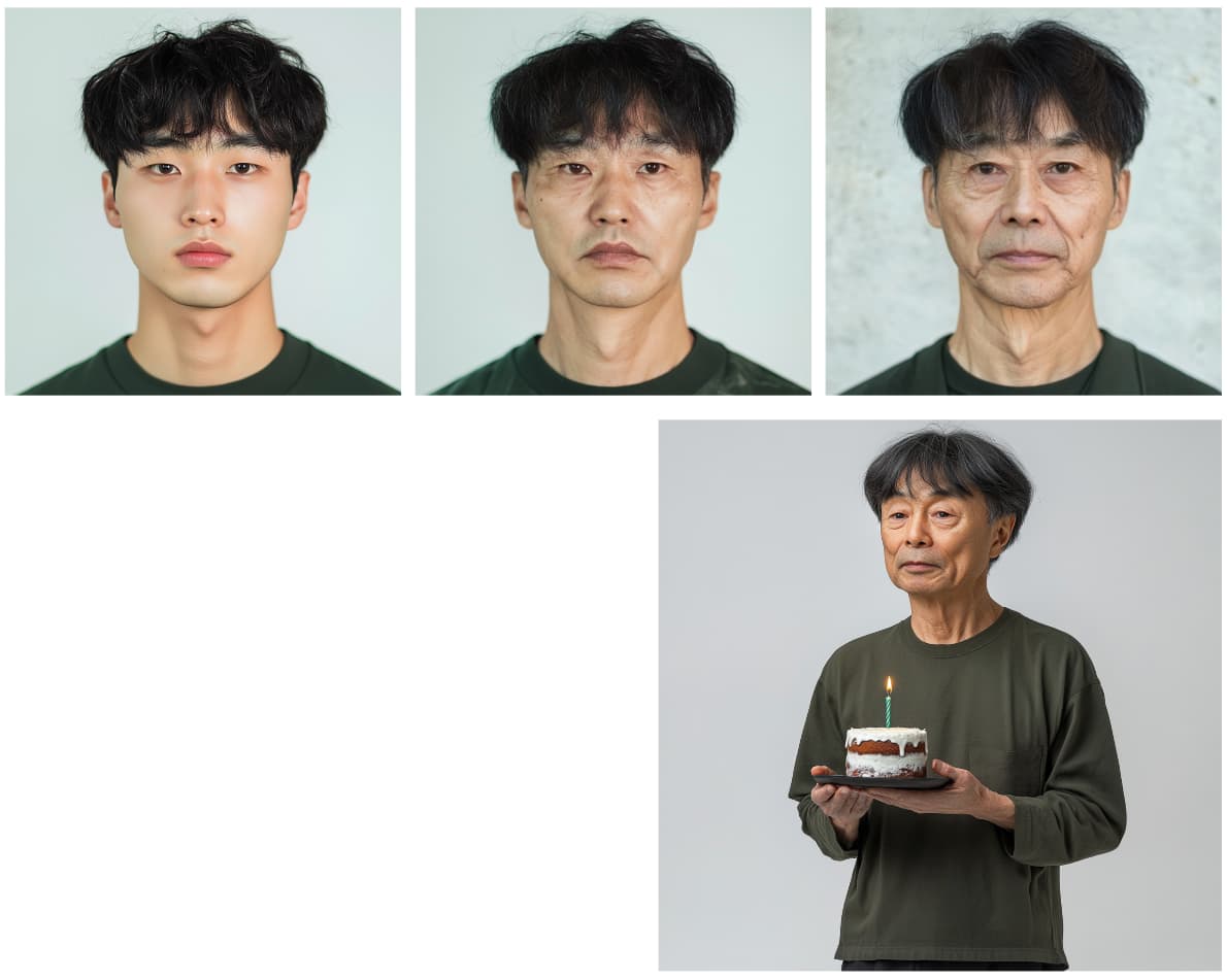 관객은 생일을 맞이한 미래의 자신의 얼굴을 본다.