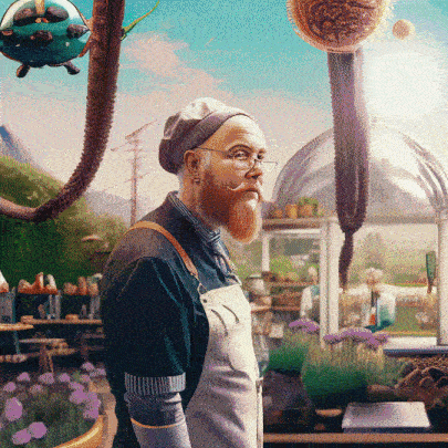 The AI generates solutions and adaptive practices, visualizing how the audience might navigate and transform these futures.